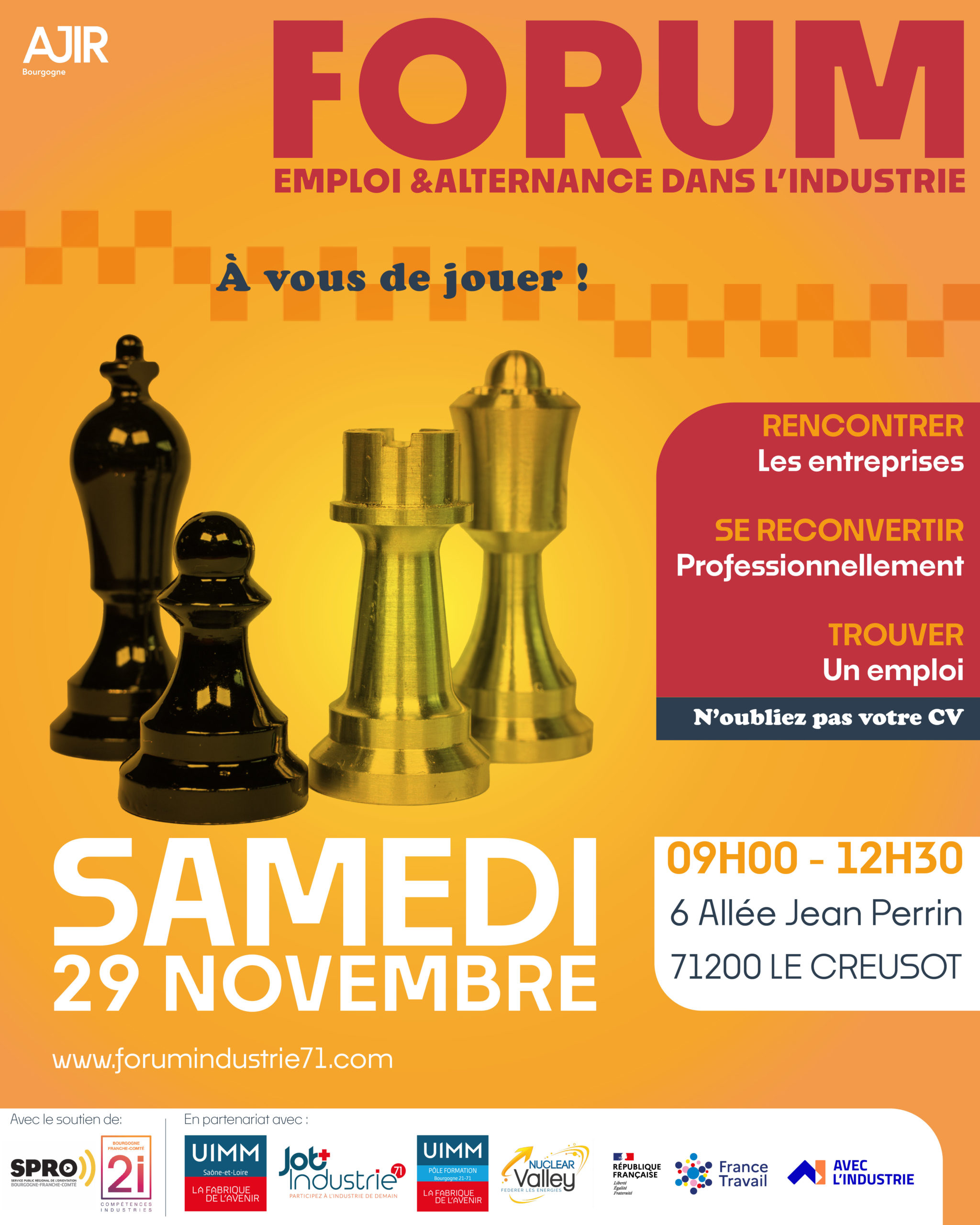 Nous vous accueillons de 9h à 12h30 pour discuter notre avenir commun. Osez l’usine à la campagne, dans un environnement rural, avec un management familial. Les emplois proposés tournent autour de la mécanique industrielle, quel que soit votre profil, nous trouverons le chemin pour intégrer une équipe pluridisciplinaire et solidaire.